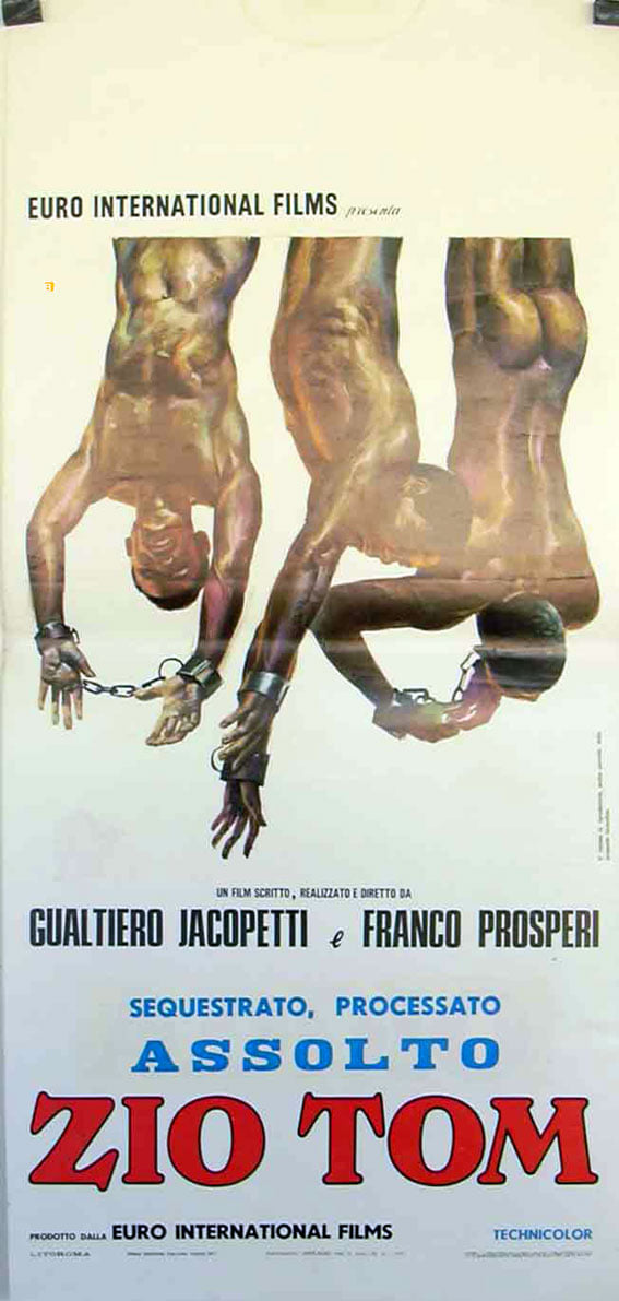 Addio zio Tom (1971) costituisce il quinto lungometraggio della controversa e ormai leggendaria coppia formata da Gualtiero Jacopetti e Franco Prosperi, e rappresenta, forse più di ogni altro loro lavoro, il punto di massima radicalizzazione del cosiddetto mondo movie, spinto qui fino a una soglia di parossismo ideologico ed estetico difficilmente eguagliabile.Film violentemente razzista, esplicitamente provocatorio e deliberatamente osceno, Addio zio Tom mette in scena una rievocazione allucinata dell’epopea dello schiavismo e del colonialismo occidentale, riletta attraverso una lente pop estrema che non mira né alla ricostruzione storica né alla denuncia morale, ma piuttosto alla sollecitazione delle pulsioni più morbose dello spettatore. La narrazione, se così la si può definire, procede per accumulo, per shock successivi, in un flusso sconclusionato e ipertrofico che sovrappone il grottesco a una tecnica filmica non convenzionale, capace tuttavia di una potenza visiva innegabile.Alla sua uscita, il film fu duramente criticato e bollato come esempio di neo-schiavismo massmediologico, anche a causa dell’enorme quantità di comparse nere nude, fornite direttamente dal regime di François “Papa Doc” Duvalier ad Haiti, elemento che contribuì a rendere l’operazione non solo esteticamente disturbante, ma anche politicamente ambigua. Le difficoltà censorie furono immediate: il film venne sequestrato, successivamente rimontato — con interventi diretti dello stesso Jacopetti, e infine redistribuito con il titolo alternativo Zio Tom, in una versione mutilata ma non meno urticante.