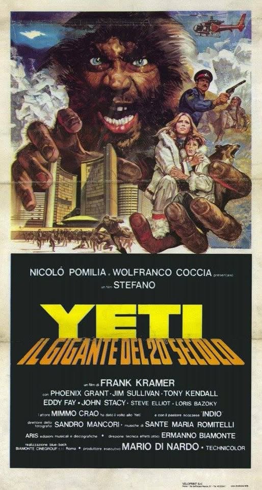 Capolavorissimo del trash italiano e straculto da sempre. Epico spaghetti-King Kong a basso budget per la folle regia del pur navigato Gianfranco Parolini. Considerato uno dei peggiori film mai apparsi sulla faccia della terra, vanta in realtà un numero sempre crescente di fans in tutto il mondo. La storia è clonata da King Kong (cattura e trasporto in città, con ribellione e fuga), qui però abbiamo il fantastico culturista romano Mimmo Crao vestito da muflone, che barrisce come un elefante. Un disastro totale sia per la produzione, che come incasso al botteghino. Momenti di trash puro come strangolamenti con l’alluce, cabine telefoniche volanti, gambe trasparenti, capezzoli giganti che si restringono, lische di pesce usate come pettine. Colonna sonora di rara epica bruttezza a cura degli The Yetians con richiami palesi ai Carmina Burana di Orff. In India fu girato una specie di remake completamente allucinato.
